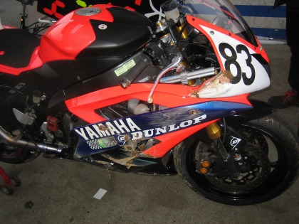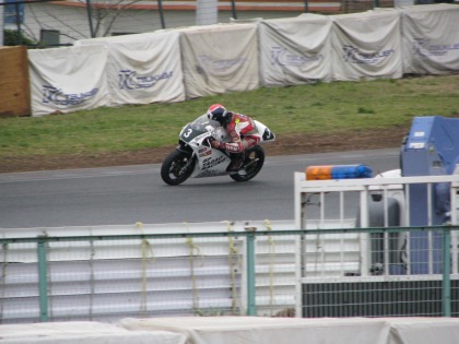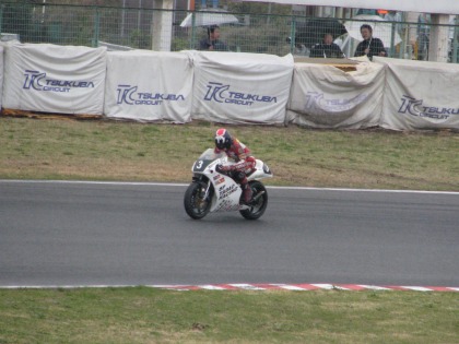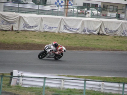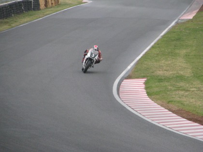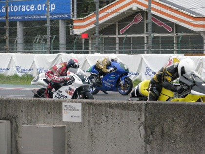 16:28 戻ってきました。 オパミンは6周目の2ヘアで転倒。 ライダーはイン側へ逃げ、マシンはアウトのグリーンへ。 レース中、マシンに戻ることができず、レース終了。 残念でした。 31台出走中、6台が転倒リタイヤと言う荒れたれーすでした。 |