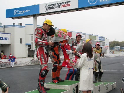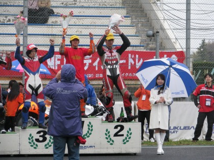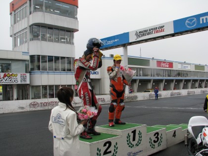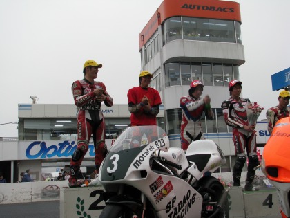 14:32 みんな嬉しそう 表彰式を終えて、ピットに戻ってきました。 みんな嬉しそう |