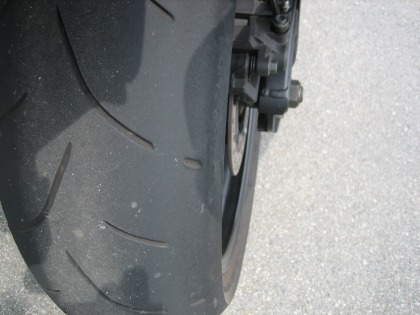 12:16 タイヤは 食事が終わって、店を出て、R1のタイヤを眺めると、まだまだ余裕がありますね。 タイヤの山も、4〜5分残りと言ったところで、あと2,000kmくらいはもつかな。 タイヤはBSの002。 それでは、出発します。 |