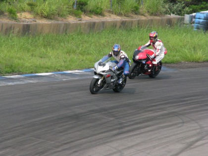 17:12 終了 5時になりました。走行会は終了です。 周回数、トータル56周→112km 使用したガソリン14リットル 燃費 8.0kmでした。 マエダコレーシングの走行会は各ポストに監視員が不在で、センターでカメラで監視しているタイプの走行会です。そのため、12:00〜17:00の5時間で\12,000と安いです。 目を三角形にして、思いっきり攻めるんではなく、セッティングを確認したり、普通に練習をするのであれば、お得だと思います。 冷たい飲物もたくさん出してくれるし。(*^_^*) |