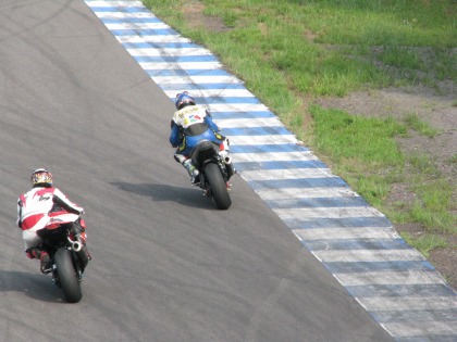 タイム、6秒7 です。(-_-;) いやぁ〜。 正直、載せたくなかった。 タイム悪すぎ! ”乗り続けていない”って言うのはダメなんですね。 見事にタイムが物語っています。 ライディングをしていてタイムが出ない、乗れていないのが分かります。 サーキット走行だと、決まったバンク角までペタッとマシンを寝かせるのが多いんですが、”乗れていない”とそれが出来ない。マシンを信じていないと言うか、自然に体が逃げると言うか。 そうすると、マシンの旋回性が出ずに曲がらない→アクセルがきちっと開かない→タイムが遅い。となります。 こうゆう時に振られると、体がついていかないで、転んじゃったりします。 でも、否、なので、今日は無理をしないで慣熟走行に徹します。 P-LAPで毎周タイムが分かると、「よ〜し、次は」ってモチベーションが上がってくるんですが(で、結局転んじゃったりする)、エビスだとピットに戻らないとタイムが分からないので、その点ではイマイチです。 そう言えば、タイヤを交換するのを忘れていました。 ユーズドはユーズドなんですが、コンパウンドがTYPE3(ミディアム)でした。フロントはミディアムでもOKなんですが、リヤのミディアムは夏場では柔らかすぎです。 走っていて腰がなく、カチッとした安心感がありません。それでも、この程度のタイムで走る分にはコンパウンドは関係ありません。ただ、消耗が早いだけです。 結局、最後の方になって感覚が戻ってきて、もう少し行けそうな感じでしたが、今回はやめておきました。 ついつい、やりすぎると転んじゃうんで・・・ しばらくは転ばないように、手堅く走るつもりです。 ついでに暑さのため、結構扱いがラフになっちゃうところもあります。 先週の筑波戦で、大方の選手のタイムが落ちているのが分かりますね。 それでも、一部のトップグループはそれほどタイムが落ちていないのは、やっぱり才能? いやいや、言い訳いっぱい書いちゃった。 結局、最後に1分6秒797 で終わりにしました。 |