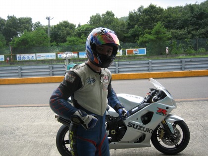 12:09 すーさん すーさんは既に到着ずみ。 今回、K2Yのバイク仲間で参加したのは、すーさんと自分の2人だけでした。 全体の参加者も12、3人で、ほぼ貸し切り状態です。 すーさんはお盆休みなので、昨日のうちに移動して、郡山に一泊して余裕の現地入り、やるき満々です。 |