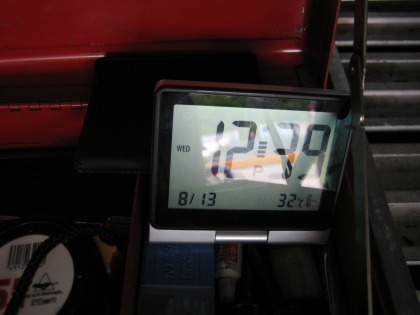 12:36 コンディション 気温32℃ エビスサーキットは標高が約500m、安達太良山の麓にあることもあり、日陰に居ればそれほど暑いとは感じませんが、バイクを整備するために、一度ピットロードに出ると、コースのアスファルトからの照り返しもあり、汗がどっと吹き出てきます。 先々週の筑波サーキットも暑かったが、ここエビスもそれなりに暑い! |