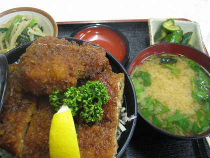18:40 ソースカツ丼(ロース) 高速道路の深夜割引の説明をしていたら(?)、料理が出てきてしまいました。 注文したのは”ソースカツ丼(ロース)”¥950也です。 ヒレの場合は\1,000になります。 出されたソースカツ丼は小さめのドンブリにてんこ盛り状態、ボリューム満点です。 。 それでは、早速いただきます。 『美味し!(*^_^*)』 今まで、あっちこっちでソースカツ丼のお品書きを見ましたが、今まで食べず嫌いでした。 どちらかと言うと、オーソドックスなカツとタマネギを汁で煮て玉子でとじたカツ丼が好みでした。 |
