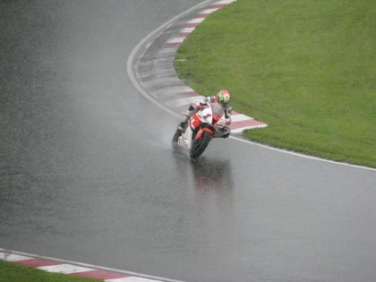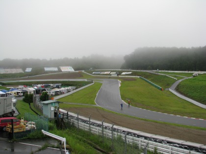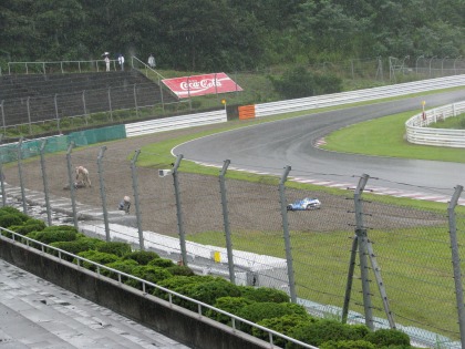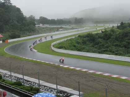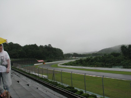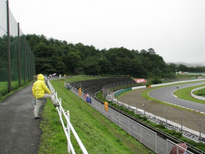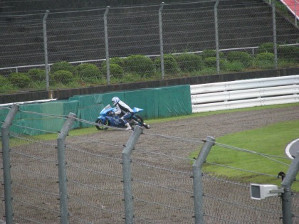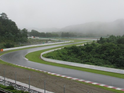 SPのアウトから最終に続く110Rを見ると、路面には水溜まりが、ヘビーウェットのコンディションです。