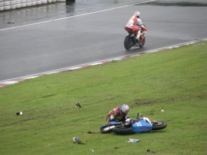 カメラを構えていたら目の前の3コーナーで転倒したマシンもありました。
