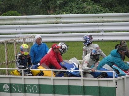 レース終了後、転倒したマシンの回収のためトラックが回ってきました。