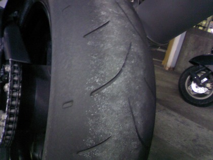 21:48 交換終了 交換終了。 タイヤ交換中にスイングアーム廻りの掃除をして、タイヤ交換終了。 さて、このタイヤどれくらい保つのかな? 次の週、富士宮までツーリングにツーリングに行きましたが、タイヤのインプレッションは、普通。 フロントを交換していなかったこともあり違和感なし。 タイヤ交換直後の乗り味の変化は主にフロントに寄ることが多いことがわかりますね。 寝かし込みもリニアで悪くありません。 グリップは、最近そんなに過激に走ってないので、不明。そこそこのペースで走る分には滑る気配もありません。 ただ、旋回力は、グイグイイン側に入っていく様なことはなく、弱めのアンダーかな。と言った感じです。 |