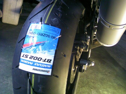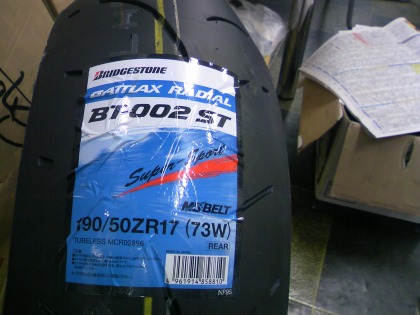 20:05 BT-002ST 交換するタイヤはBT-002ST(ストリート)。 今まで履いていたタイヤもBT-002、今回交換しないフロントもBT-002なので、あまり考えずにそのまま、BT-002STを選択。 タイヤサイズも 190/50 と190/55 がありますが、特に不便も感じないので、ノーマルサイズの 190/50 にしました。 |