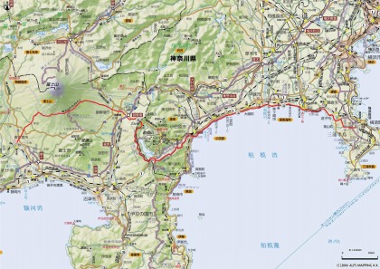 9:32 県道75号湯河原箱根仙石原線 ターンパイクの入口で¥500払い、白バイに捕まらないよう安全運転で大観山まで進み、県道75号湯河原箱根仙石原線(通称 椿ライン)で箱根峠方面に向かいます。 前方には富士山のシルエットが見えてきました。 |