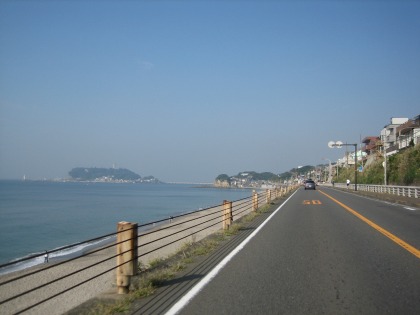 8:30 『江ノ島が見えてき〜た♪』 自宅を出て、20分。 海沿いの国道134号線を西走し、江ノ島が見えてきました。 西湘バイパスは、まだちょと先だ。 |