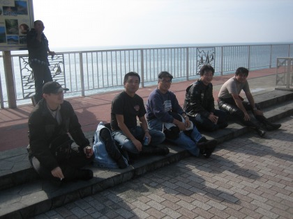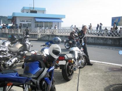 | 参加メンバー:山口 さん(カタナ、主宰) アベちゃん(Kawasaki D-TRACKER)、奥山 さん ('89GSX-R1100)、田口さん(XJR1300)、 ドイツ製耕耘機愛好家さん(BMW R1150R Road Star)、プーさん(カタナ)、 あるじ('03 YZF-R1) ※ おおよそ あいうえお順) |