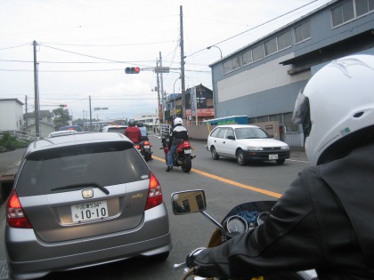 13:51 午前中とおってきた富士山スカイラインを快走し、御殿場の近くまで、戻ってきました。 富士宮からポツポツ降り始めた雨は、ずーっとポツポツ、ポツポツ。 シールドに当たる雨粒が気にはなりますが、路面を濡らすほどには降らず、それほどペースを落とさずに、走ってきました。 富士宮から御殿場までの約40km、ほとんど信号もなく、行きと同様、気持ちよく走れました。 ここ御殿場市の中畑付近は、道の両側のフェンスの向こうは陸上自衛隊の基地で、その裏は東富士演習場と自衛隊の庭みたいなもんです。 |