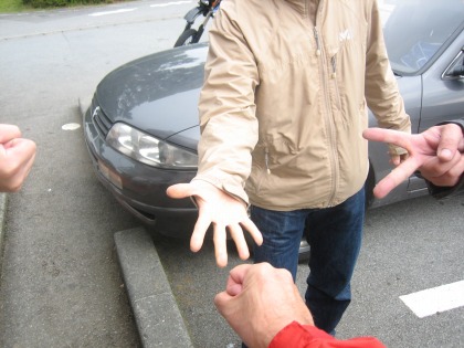 13:55 負けたの? 負けたのは、午前中に負けたのと同じ人。 また、チョキで負けてる。 芸がない。 そんなに、元気にチョキを出しても、負けは負け。 2戦2敗。 負け率100% \120×4名様 =\480 被害は意外に少なかった。 |