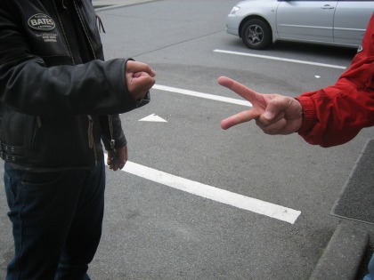 13:55 じゃんけんするよ 御殿場の近くまで来て、休憩。 残った4人で今日2回目のジュースじゃんけん。 |