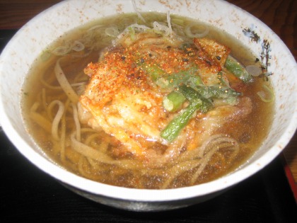 13:59 昼食です 八王子から一気に”ほったらかし温泉”まできたので、昼食を食べてませんでした。(@_@) ほったらかし温泉には、食事を食べるところがあるので、昼飯を食べることにします。 せっかく甲府にきたので、名物の”ほうとう”を食べようと思ったのですが、ちょっとイマイチっぽいので、ほうとうは後で食べることにして、その代わり、つなぎに軽くそばをいただきました。(七味かけ過ぎ!) |