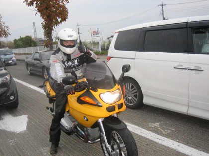 16:03 国道137号線 御坂みち 国道137号線で”御坂みち”まできました。 信号待ちでカメラを向けると、『イェー』と答えてくれるBMの佐藤さん。 バイクに似て(?)とってもジェントルなアラフォーです。 が、マフラーだけは別物、社外品を装着していますが、これがほとんど直管です。BMらしくなく、結構騒がしい、このステンレスのサイレンサーは結構いい音です。 ここから先、御坂を登り、河口湖に出て、山中湖経由で帰路につきます。 |