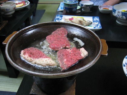 18:33 牛肉の陶板焼き バターで焼いて食べます。 |