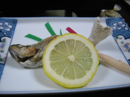 18:34 にじます こちら、”にじますの塩焼き” 焼いた川魚は上手いねぇ。 ただ少々、塩が強うござんした。(残念) |