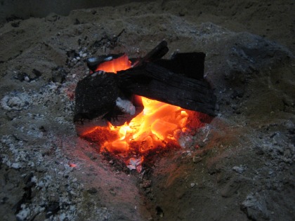 20:24 囲炉裏で遊ぼう! 夕食後は部屋に戻って、囲炉裏で遊びます。 火だいすき。 いじっていると、飽きません。 でも、炭が安物らしく、結構燻り臭い。 冬期は燃料代を別に徴収しても良いから、もう少し高級な炭をお願いしたいなぁ。 長時間遊ぶと、目が痛いです。(笑)(*_*) |