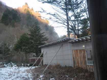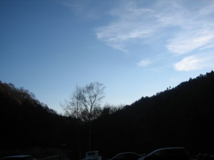 7:24 朝起きると 『雪は降ってない?・・・・・晴れてましたぁ\(^_^)/』 空は快晴、良い天気、天気が崩れるなんて予報は信じられません。 しかし、昨晩の囲炉裏での火遊びのせいで、部屋中が燻りくさい! 日本昔話だったら、「ようやくたどり着いた山奥の宿に、一晩泊まったら、夜中燻され薫製にされて、鬼に食べられちゃった」とさ。って話になりそうなくらいだ。 寝る前に、一晩寝たら、のどが痛くなりそうだなぁ・と思っていたが、そんなことにはならなかったので、まあ、この話はちょっとオーバーか。 |