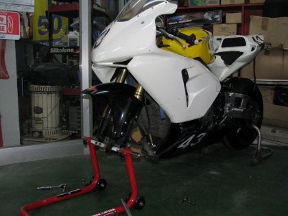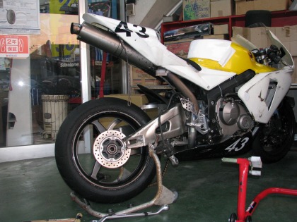 17:36 リヤは完了 リヤタイヤを交換して、タイヤを外したついでに、スイングアームの裏やスプロケットの掃除をしておきます。 タイヤ交換より、この掃除の方が手間がかかったりします。(^^;) JSBもそうですが、国内ST600もセッティングが命、難しいらしいです。 ワールドと違い、国内は5〜6カ所の少ないサーキットを転戦するので、ノウハウの蓄積がすごいらしいんです。 セッティングがピンポイントで、セッティグが出ないと頭からコンマ何秒か落ちになってしまい、トップグループで走れない状況になってしまうそうです。 そんな理由があって、全日本ではベテラン勢が息長くトップグループで走っているんですね。 |
