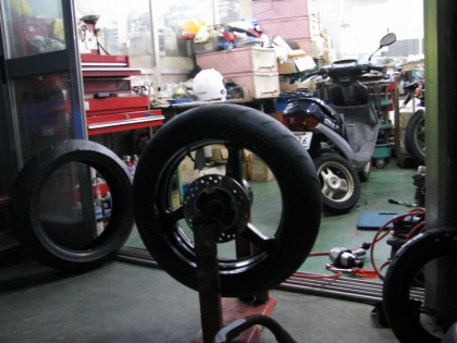16:23 まずはリヤから 前回8月にタイヤ交換をしてから筑波に3回練習に行って、タイヤが終わりました。 練習の帰りにK2Yに寄ってタイヤを交換します。 履いていたタイヤが5分山くらいのユーズドだったので、どれくらいライフがあるか分かりませんが、少なくとも3回の練習で260kmは走りました。 自分くらいのタイムだったら400kmぐらいは走れそうです。 まずはリヤタイヤから交換します。 |