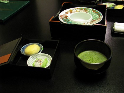 そして、日本語でなんて言うのか忘れましたが、ウェルカムドリンクで抹茶とお菓子が出てきました。