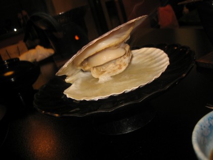 これは、特に印象に残ったと言ったものではないんですが、今日の宿泊パックだと、”ホタテ貝”。これに+5,000円位プラスすると、”アワビの踊り焼き”になったりします。