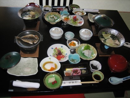 温泉から上がると、しばらくして夕食が運ばれてきました。