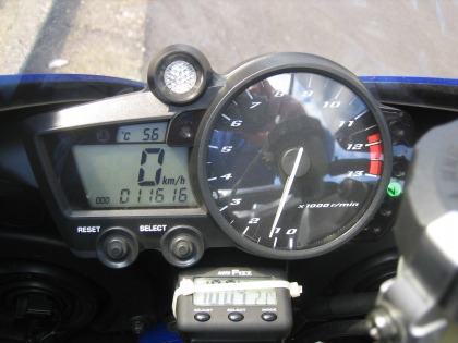 10:08 ツーリング行くよ 3月7、8日は西伊豆方面に泊まりで温泉ツーリングに行く予定でしたが、メンバーが集まらずキャンセル。 自分としては、”ツーリングに行く!”スイッチが入ってしまっているので、バイクに乗りたい! 先週も、筑波の練習を予約していたのだが、雨でキャンセル。 今週も、ウィークデーは天候が不安定でほぼ毎日雨が降っていました。 この週末は土曜日が天候を持ち直し、日曜日はまた天候が崩れるとの予報です。 と、言うことで、今日土曜日は日帰りのソロツーリングに出かけることにします! (ちなみに、時計に付いている温度計が21℃を指していますが、エンジンの暖気の熱で暖かくなっているだけ、実際の気温は10℃前後です) |