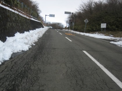 11:56 足柄道 南足柄広域農道から県道78号御殿場大井線に入り、西走して足柄峠へと向かい徐々に高度を上げていきます。 途中、今週の悪天候で降ったであろう雪が除雪され道ばたに残っていました。 県道78号線は神奈川方面から向かうと、最初北側斜面となるため、雪が残っていますが、足柄峠を越え、県道365号足柄峠線に入ると南斜面となるため、残雪を見ることはありませんでした。 |