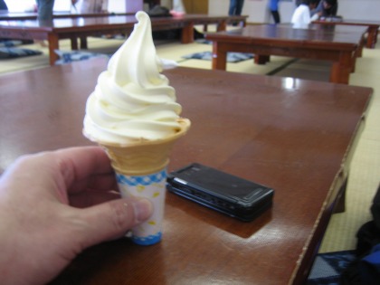 13:59 いい湯でした 一時間弱、のんびりと温泉に浸かりました。 いい湯でした。 温泉から上がって、大広間で男45歳、一人でソフトクリーム。(怖いものなし!) このあと、大広間でちょっと昼寝。 ああ極楽。(極楽には行ったこと無いけど) |