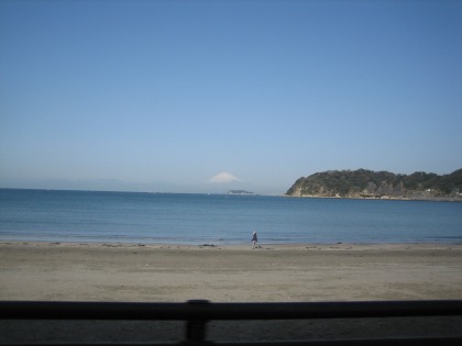 8:15 逗子海岸から 自宅の横須賀を出発して、逗葉新道経由で国道134号線に入り、渚橋を渡って逗子海岸にでました。 逗子海岸からは、遠く江ノ島の向こうに富士山を見ることができます。 空気の澄んでいる冬場であれば、富士山を良く見ることはできますが、春になると視界が悪くなるため、富士山が見える機会はぐっと減ります。 今日は、風もあることから湿気が溜まらず、空気が澄んでいます。 |