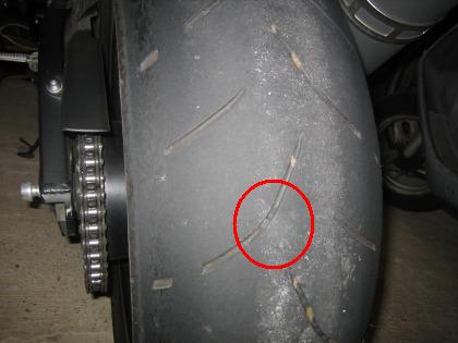 18:54 タイヤが・・・ 気が付けばリヤタイヤが無いです。 スリップマークが出てきました。 2分山くらい? 前回のタイヤ交換の履歴を調べてみたら、9,873kmで交換していました。 と言うことは、・・・ 2,400km弱しか走ってません。(-_-;) オイル交換のサイクルより短いじゃあ〜りませんか? もう、日帰りツーリング1回位で無くなりそうです。(T_T) |