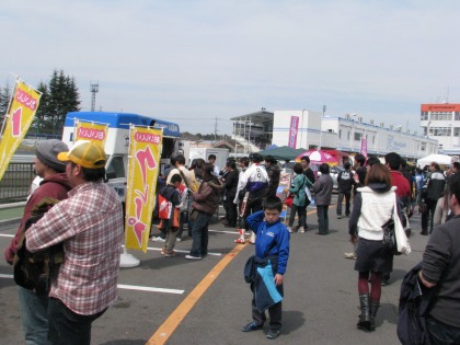 11:54 昼食を求めて GP125のレースの後はST600クラスですが、ここでちょっとインターバル。 昼食を求めて、パドックをうろつきます。 いつものように、モツ煮定食と行きたいところですが、この人出じゃ行列覚悟は必至です。 |