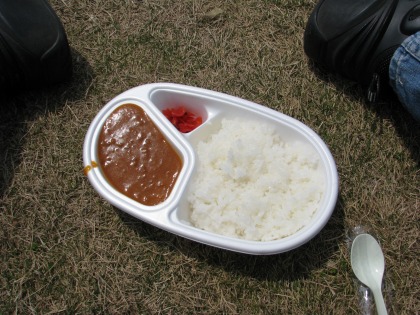 12:16 カレーです ここは賢くなって、無難にスタンドのカレー。¥600なり。 太陽の下で食べるご飯は美味しいね。(^o^) |