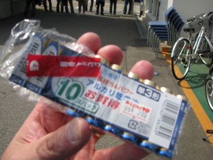 13:06 トラブル ここで、トラブル発生! 昼飯のカレーなんかまで、写真に撮っているもんで、 デジカメのバッテリーがなくなっちゃいました。いやいや、ズームとかの使いすぎ。 筑波サーキット内で電池を売っているような場所はなし、表通りのパーツショップに行きましたが、やっぱりそこにもなし。 駐車場に戻って、バイクで近くのジョイフル本田へ。(説明しようジョイフル本田は千葉県、茨城県周辺にあるディスカウントストアーである) 急いで、引き返して、なんとかST600の決勝には間に合いました。 ハイエースで来ていたら、こうは機動力がなかったね。 よかった、よかった。 |
