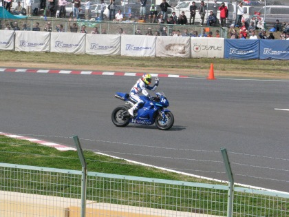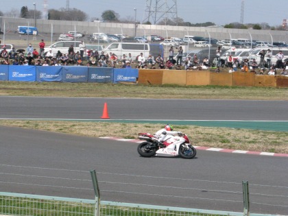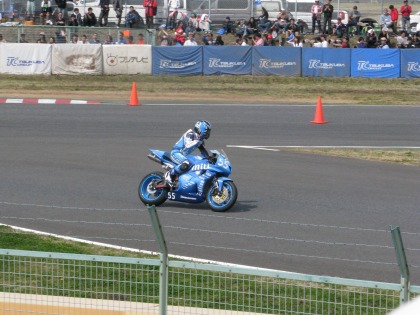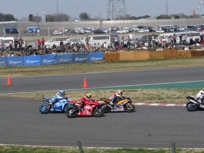 16:40 チェッカーを受けて、GP250クラスの終了です。 1980年代、RZ−R、TZ−Rを3台と乗り継いだ自分としては2サイクル250に親しみがあります あの、カミソリの様なライディングを見られなくなるのは寂しい限りです。 今日のレースはすべて終了しました。 JSBのレースが1時間ほど遅れたので、いい時間になりました。 撤収して、これからETCを取り付けにK2Yに行きます。 |