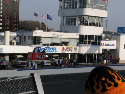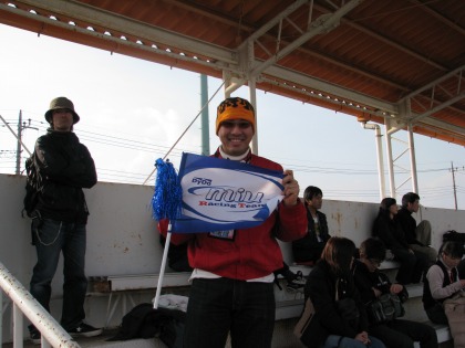 11:10 誰かと思えば MCコーナーのスタンドにふと目をやると、手をバタバタ振っている2人組。 ”すーさん”と”なるとまきさん”ではありませんか。 なんだかんだ言って、みんなレース見に来てるのね。 なるとまきさんはAOLでブログを立ち上げていたのですが、ことしの1月に、AOLがブログを辞めてしまったため、閉鎖に追い込まれてしまいました。なるとまきさんの北海道ネタは写真がきれいなので、夏までには復活して欲しいなぁ。 |