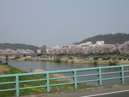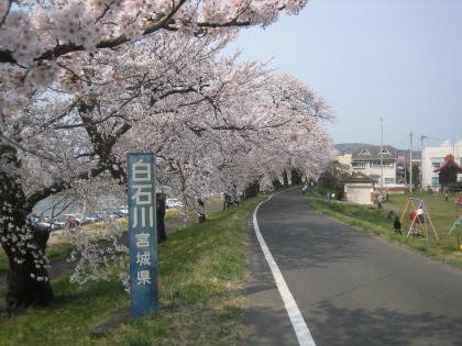 14:25 白石川 桜の花は、阿武隈川の支流、白石川の堤防の上で咲いていました。 |