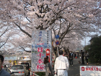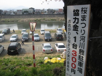 14:33 河川敷の駐車場は 桜まつりの会場となる河川敷の駐車場は、まだ空きがありますが、ここに来るまでのアクセスが悪く、到達するのは容易ではなさそうです。 |