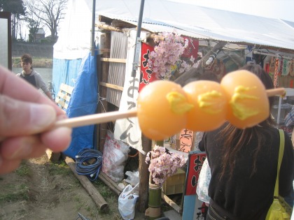 14:56 玉こん でも、こうゆう場所で屋台が出ているとちょっとなにか買い食いしたい。 で、買っちゃったのが”玉こん” ¥100 ”こんにゃく”だから、太らないしね。(^^;) |