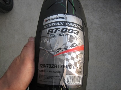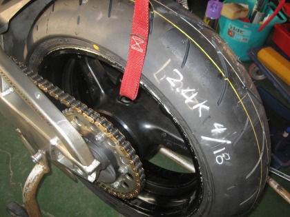 15:44 リヤタイヤ交換 筑波の練習の帰り、タイヤ交換のためK2Yに寄りました。 (用事がなくても寄るんだけどね) 2007年9月に購入したBT-002(TYPEU)の新品(?) 去年は結局、1年中古タイヤを使っていたので、新品を卸す機会がありませんでした。 一応、ラップ巻いて冷暗所に保管しておいたんですが、大丈夫でしょうか。 たぶん、大丈夫でしょう。 今まで、履いていたタイヤも同じ時に買ったタイヤですから。 |