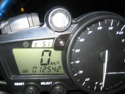17:35 交換時期 オッッド!オドメータの写真を取り忘れていました。 (自分で書いていて、鳥肌が立つ、オヤジギャグ) 気を取り直して、写真を撮る。距離は12,542km メータ左上にモスラの幼虫の様に載っているのは、この間取り付けたETCのインジケータ。 ヘソを曲げて、横向いてます。(笑) 正面を向いているのは、シフトアップのタイミングライト。 夜間走行の時に点灯すると、とっても眩しい。 と言っても、点灯するのはローギヤーでも100キロ以上出るので、その時点でOUT! |