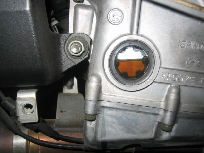 18:35 オイルレベル 突然、話題が飛びますが、オイルレベル、OK! 藤巻さんがタイヤ交換。 自分がオイルを交換して、ブレーキのオーバーホールを始めたので、作業が色々と入り交じっています。 リヤタイヤを付け替えたところで、スタンドから下ろして、最終的なオイルレベルの確認。 OKです! |
