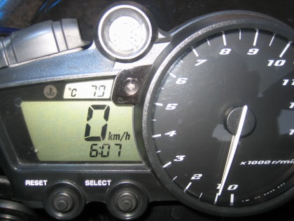18:08 時計付いてました!(汗) 首都高速の大黒パーキングで、シフトアップのタイミングライトの調整をしていたら、オドメータのところに時間表示が! 時計付いてましたぁ。 去年、購入直後に「時計が付いていないのは、ちょっと不便ですね」なんて書いちゃって、ヤマハさんご免なさい。 |