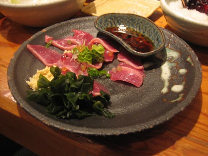 19:23 砂ずりの刺身 まずは砂ずりの刺身。 砂ずりは砂肝のことで、新鮮なものは刺身で食べると美味。 ショウガ正油でいただきますが、クセが無くて、コリコリした食感がたのしくて、美味しい。ウヒ! (*^_^*) |