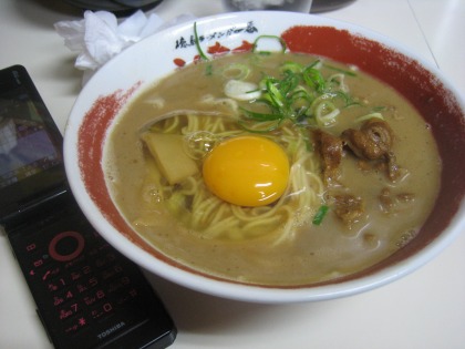 22:44 ご馳走さまでした あと、肉がチャーシューじゃなくて、甘辛のしょう油で煮込んだ豚のバラ肉。 すき焼き味の豚バラって感じですね。 で、完食しちゃいました。 ご馳走さまでした。 美味しいけれど、味が濃くて、育ち盛りじゃないおじさん(自分)の体にはわるそう。特に飲んだ後の〆には。 でも、3カ月に1回くらいは食べたい味かなぁ。 一杯¥500とリーズナブル。 |