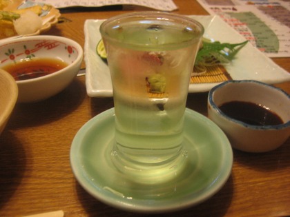20:07 日本酒 で、当然日本酒。 まずは、徳島のお酒”芳水”純米吟醸。 味? 覚えてません。(-_-) クセが無かったような・・・ |